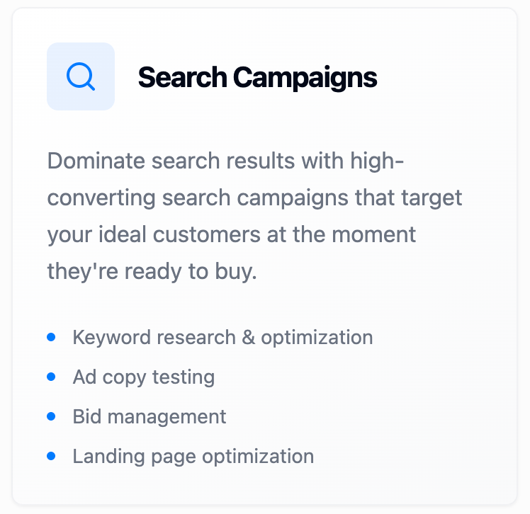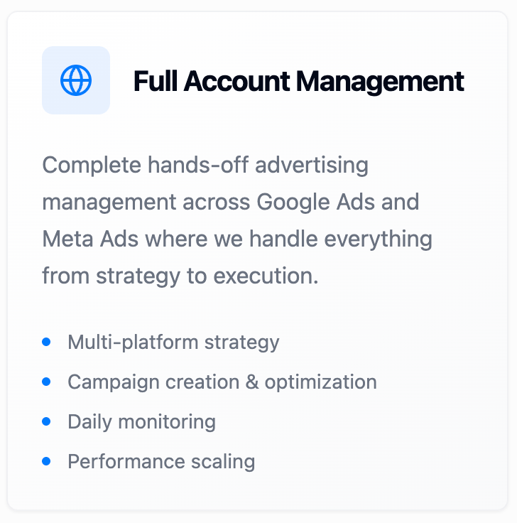 From strategy to execution, we handle every aspect of your Google Ads campaigns to deliver maximum ROI and sustainable growth.